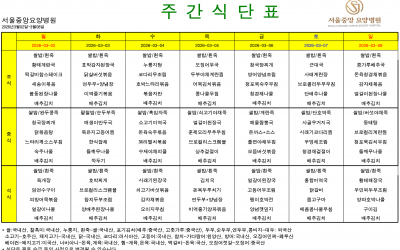 친환경&유기농 식재료를 사용한 서울중앙 요양병원의 식단입니다.