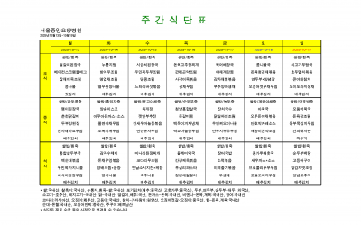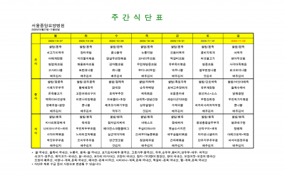 친환경&유기농 식재료를 사용한 서울중앙 요양병원의 식단입니다.