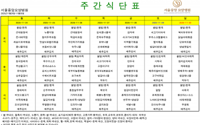 친환경&유기농 식재료를 사용한 서울중앙 요양병원의 식단입니다.